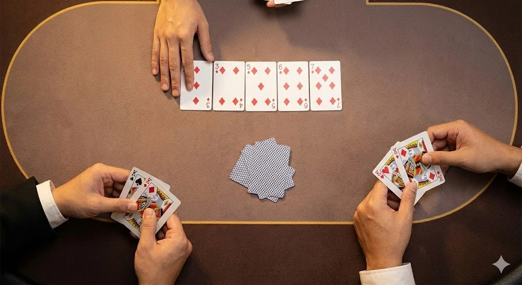 | Sảnh | Ba lá bài trở lên có giá trị liên tiếp. | 4, 5, 6, 7 (bất kỳ chất) |